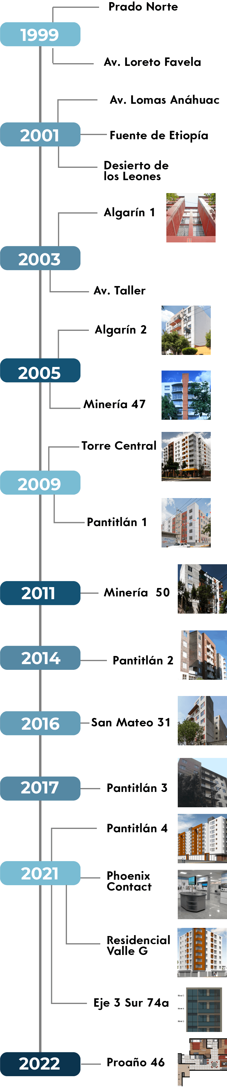 La empresa nace en el año 1966, dedicada a la planeación, desarrollo y construcción de proyectos tales como residencias, edificios de oficinas, edificios comerciales y de uso mixto , ya sea por encargo de clientes o por cuenta propia.